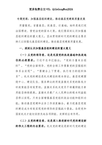 【七哥公文】2025年:专题党课:加强基层组织建设,推动基层党建高质量发展+更多免费公文+VX:QiGeGongWen2024+更多免费公文+VX:QiGeGongWen2024