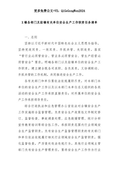 【七哥公文】2025年:X镇各部门及驻镇有关单位安全生产工作职责任务清单+更多免费公文+VX:QiGeGongWen2024+更多免费公文+VX:QiGeGongWen2024