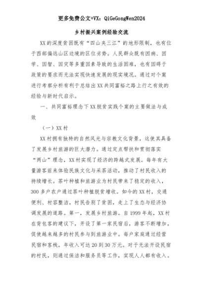 【七哥公文】2025年:乡村振兴案例经验交流+更多免费公文+VX:QiGeGongWen2024+更多免费公文+VX:QiGeGongWen2024