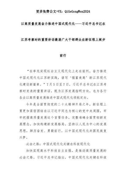 【七哥公文】2025年:以高质量发展奋力推进中国式现代化——习近平总书记在江苏考察时的重要讲话激励广大干部群众在新征程上阔步前行+更多免费公文+VX:QiGeGongWen2024+更多免费公文+VX:QiGeGongWen2024