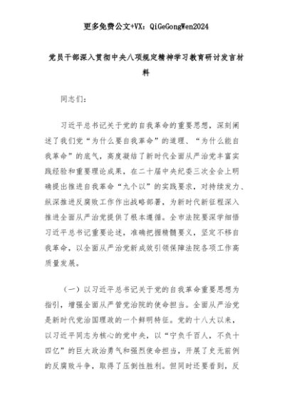 【七哥公文】2025年:党员干部深入贯彻中央八项规定精神学习教育研讨发言材料(法院)+更多免费公文+VX:QiGeGongWen2024+更多免费公文+VX:QiGeGongWen2024