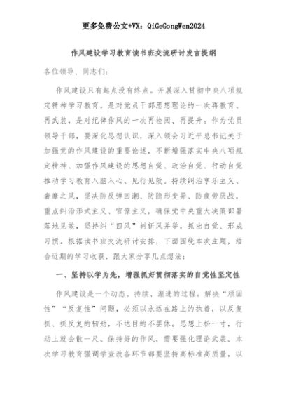 【七哥公文】2025年:作风建设学习教育读书班交流研讨发言提纲+更多免费公文+VX:QiGeGongWen2024+更多免费公文+VX:QiGeGongWen2024