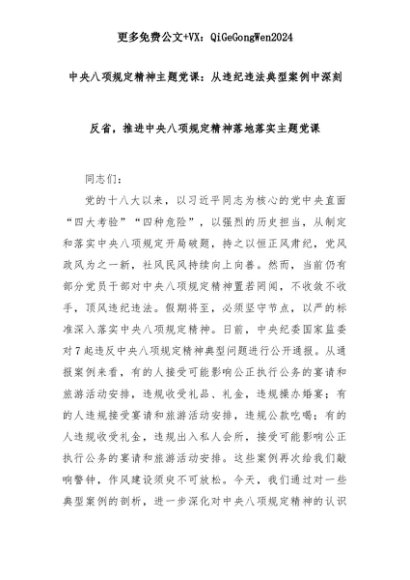 【七哥公文】2025年:中央八项规定精神主题党课:从违纪违法典型案例中深刻反省,推进中央八项规定精神落地落实主题党课+更多免费公文+VX:QiGeGongWen2024+更多免费公文+VX:QiGeGongWen2024