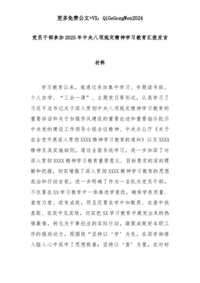 【七哥公文】2025年:党员干部参加2025年中央八项规定精神学习教育汇报发言材料+更多免费公文+VX:QiGeGongWen2024+更多免费公文+VX:QiGeGongWen2024