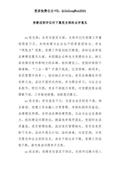 【七哥公文】2025年:党建述职评议对下属党支部的点评意见+更多免费公文+VX:QiGeGongWen2024+更多免费公文+VX:QiGeGongWen2024