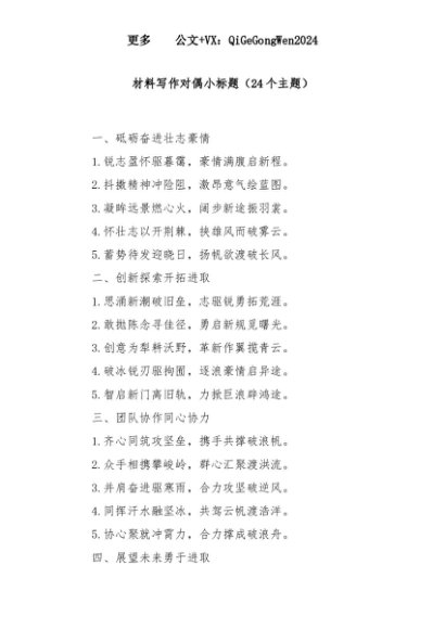 【七哥公文】2025年:材料写作对偶小标题(24个主题)+更多免费公文+VX:QiGeGongWen2024+更多免费公文+VX:QiGeGongWen2024
