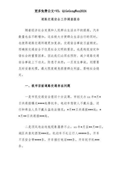 【七哥公文】2025年:道路交通安全工作调查报告+更多免费公文+VX:QiGeGongWen2024+更多免费公文+VX:QiGeGongWen2024
