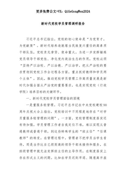 【七哥公文】2025年:新时代党校学员管理调研报告+更多免费公文+VX:QiGeGongWen2024+更多免费公文+VX:QiGeGongWen2024