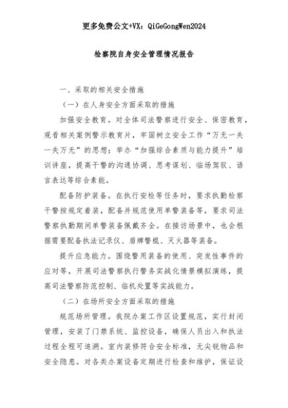 【七哥公文】2025年:检察院自身安全管理情况报告+更多免费公文+VX:QiGeGongWen2024+更多免费公文+VX:QiGeGongWen2024