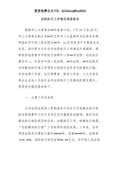 【七哥公文】2025年:法院执行工作情况调查报告+更多免费公文+VX:QiGeGongWen2024+更多免费公文+VX:QiGeGongWen2024