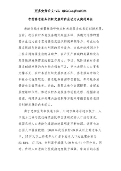 【七哥公文】2025年:农村养老服务创新发展的内生动力及实现路径+更多免费公文+VX:QiGeGongWen2024+更多免费公文+VX:QiGeGongWen2024