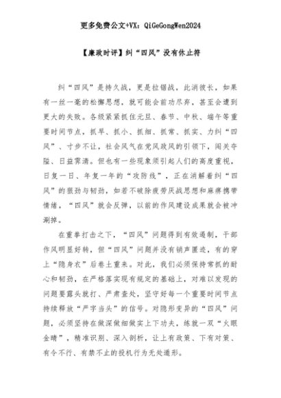 【七哥公文】2025年:【廉政时评】纠“四风”没有休止符+更多免费公文+VX:QiGeGongWen2024+更多免费公文+VX:QiGeGongWen2024