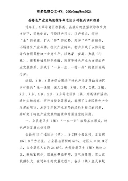 【七哥公文】2025年:县特色产业发展助推革命老区乡村振兴调研报告+更多免费公文+VX:QiGeGongWen2024+更多免费公文+VX:QiGeGongWen2024