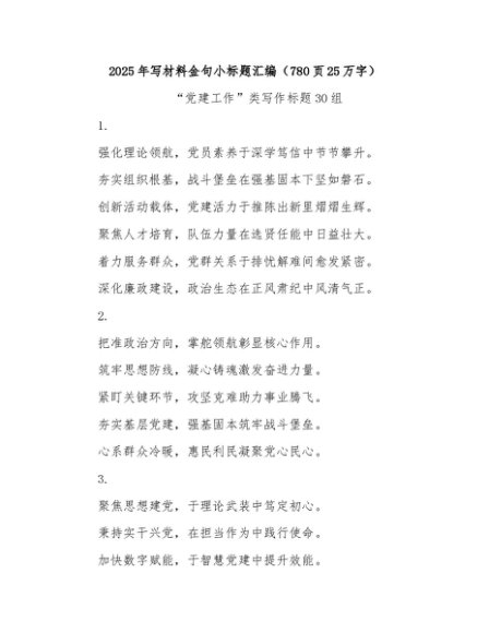 【七哥公文】2025年:2025年写材料金句小标题汇编(780页25万字)+更多免费公文+VX:QiGeGongWen2024+更多免费公文+VX:QiGeGongWen2024