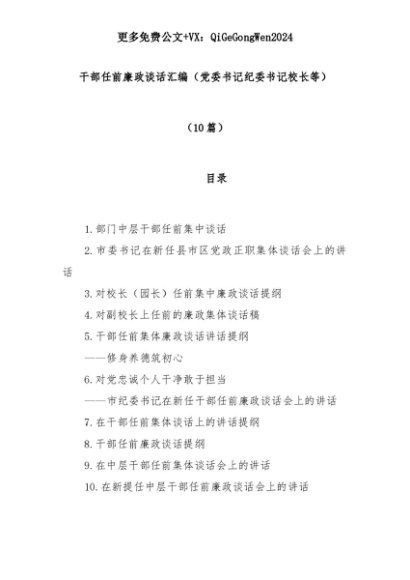 【七哥公文】2025年:(10篇)干部任前廉政谈话汇编(党委书记 纪委书记 校长等)+更多免费公文+VX:QiGeGongWen2024+更多免费公文+VX:QiGeGongWen2024