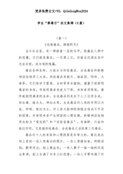 【七哥公文】2025年:(5篇)学生“禁毒日”征文集锦+更多免费公文+VX:QiGeGongWen2024+更多免费公文+VX:QiGeGongWen2024