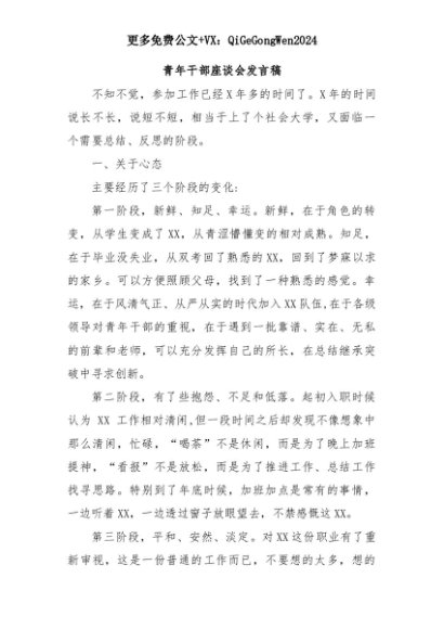 【七哥公文】2025年:青年干部座谈会发言稿+更多免费公文+VX:QiGeGongWen2024+更多免费公文+VX:QiGeGongWen2024