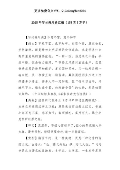 【七哥公文】2025年:2025年写材料用典汇编(157页7万字)+更多免费公文+VX:QiGeGongWen2024+更多免费公文+VX:QiGeGongWen2024