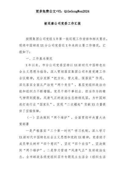 【七哥公文】2025年:被巡察公司党委工作汇报+更多免费公文+VX:QiGeGongWen2024+更多免费公文+VX:QiGeGongWen2024