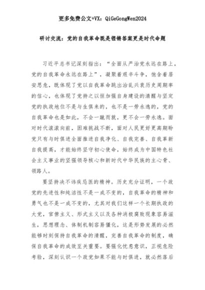 【七哥公文】2025年:研讨交流:党的自我革命既是铿锵答案更是时代命题+更多免费公文+VX:QiGeGongWen2024+更多免费公文+VX:QiGeGongWen2024