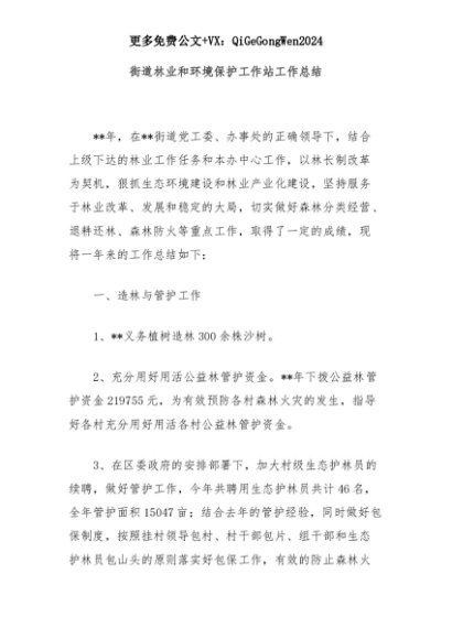 【七哥公文】2025年:街道林业和环境保护工作站工作总结+更多免费公文+VX:QiGeGongWen2024+更多免费公文+VX:QiGeGongWen2024