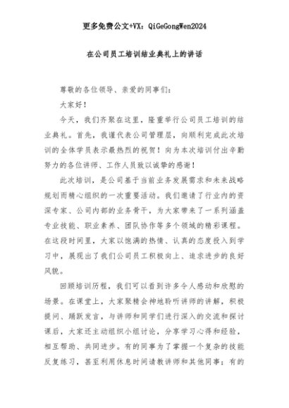 【七哥公文】2025年:在公司员工培训结业典礼上的讲话+更多免费公文+VX:QiGeGongWen2024+更多免费公文+VX:QiGeGongWen2024