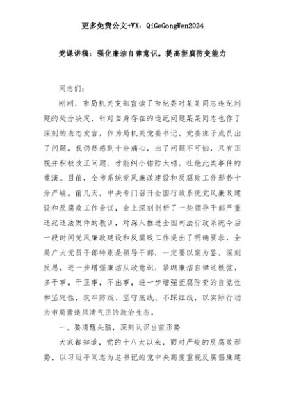 【七哥公文】2025年:党课讲稿:强化廉洁自律意识,提高拒腐防变能力+更多免费公文+VX:QiGeGongWen2024+更多免费公文+VX:QiGeGongWen2024