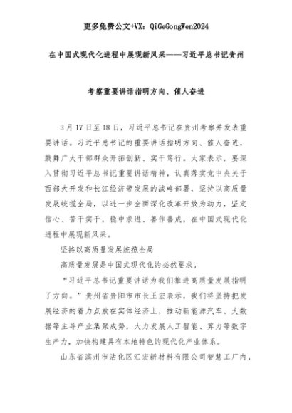 【七哥公文】2025年:在中国式现代化进程中展现新风采——习近平总书记贵州考察重要讲话指明方向、催人奋进+更多免费公文+VX:QiGeGongWen2024+更多免费公文+VX:QiGeGongWen2024