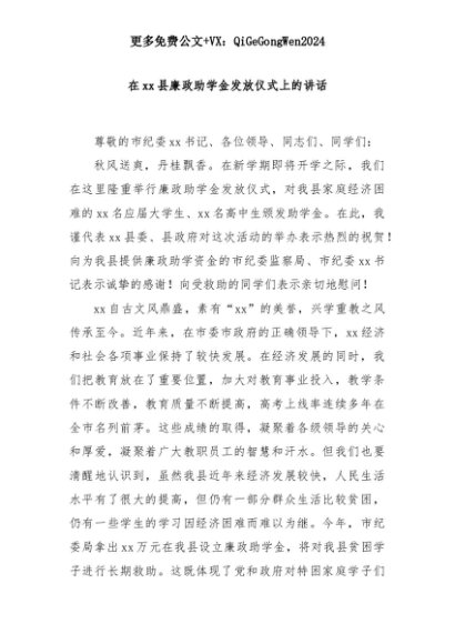 【七哥公文】2025年:在xx县廉政助学金发放仪式上的讲话+更多免费公文+VX:QiGeGongWen2024+更多免费公文+VX:QiGeGongWen2024
