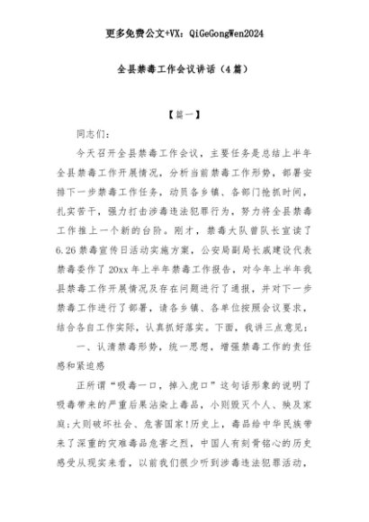 【七哥公文】2025年:(4篇)全县禁毒工作会议讲话+更多免费公文+VX:QiGeGongWen2024+更多免费公文+VX:QiGeGongWen2024