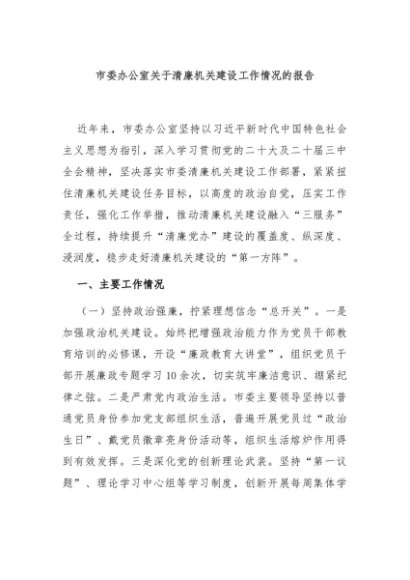 / 【七哥公文】2025年:市委办公室关于清廉机关建设工作情况的报告+更多免费公文+VX:QiGeGongWen2024