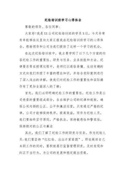 【七哥公文】2025年:纪检培训班学习心得体会+更多免费公文+VX:QiGeGongWen2024