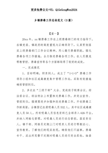 【七哥公文】2025年:(3篇)乡镇禁毒工作总结范文+更多免费公文+VX:QiGeGongWen2024+更多免费公文+VX:QiGeGongWen2024