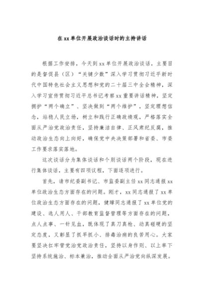 / 【七哥公文】2025年:在xx单位开展政治谈话时的主持讲话+更多免费公文+VX:QiGeGongWen2024