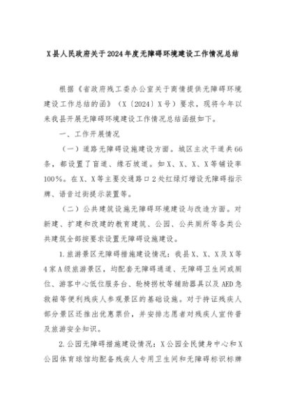 【七哥公文】2025年:X县人民政府关于2024年度无障碍环境建设工作情况总结+更多免费公文+VX:QiGeGongWen2024