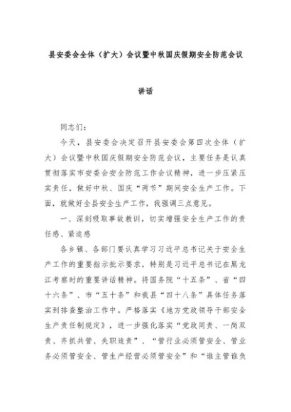 【七哥公文】2025年:县安委会全体(扩大)会议暨中秋国庆假期安全防范会议讲话+更多免费公文+VX:QiGeGongWen2024