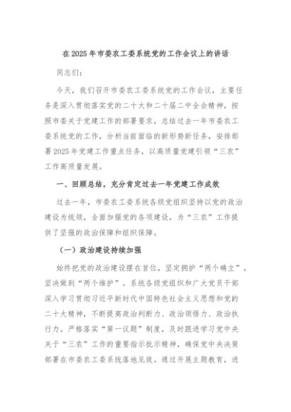 / 【七哥公文】2025年:在2025年市委农工委系统党的工作会议上的讲话+更多免费公文+VX:QiGeGongWen2024