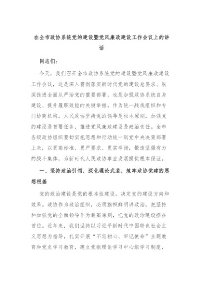 【七哥公文】2025年:在全市政协系统党的建设暨党风廉政建设工作会议上的讲话+更多免费公文+VX:QiGeGongWen2024