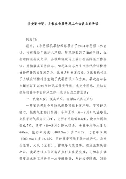 / 【七哥公文】2025年:县委副书记、县长在全县防汛工作会议上的讲话+更多免费公文+VX:QiGeGongWen2024