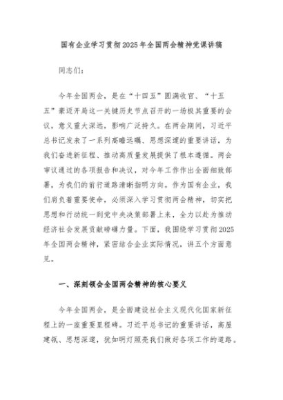 / 【七哥公文】2025年:国有企业学习贯彻2025年全国两会精神党课讲稿+更多免费公文+VX:QiGeGongWen2024