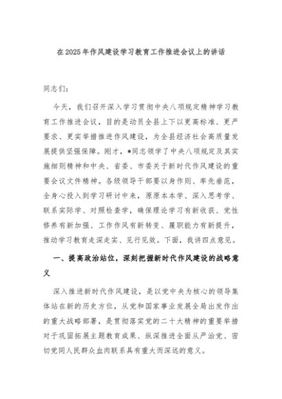 / 【七哥公文】2025年:在2025年作风建设学习教育工作推进会议上的讲话+更多免费公文+VX:QiGeGongWen2024