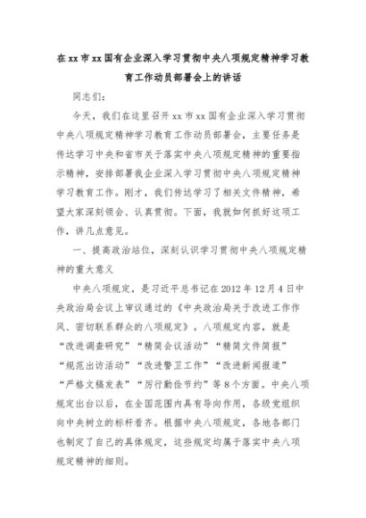 【七哥公文】2025年:在xx市xx国有企业深入学习贯彻中央八项规定精神学习教育工作动员部署会上的讲话+更多免费公文+VX:QiGeGongWen2024