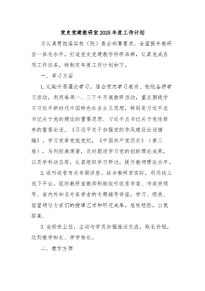 / 【七哥公文】2025年:党史党建教研室2025年度工作计划+更多免费公文+VX:QiGeGongWen2024