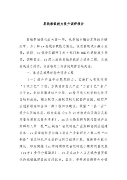 【七哥公文】2025年:县城承载能力提升调研报告+更多免费公文+VX:QiGeGongWen2024