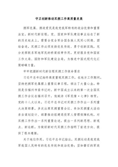 / 【七哥公文】2025年:守正创新推动双拥工作高质量发展+更多免费公文+VX:QiGeGongWen2024