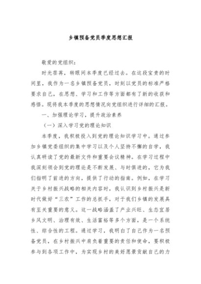 / 【七哥公文】2025年:乡镇预备党员季度思想汇报+更多免费公文+VX:QiGeGongWen2024
