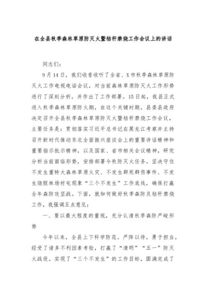 【七哥公文】2025年:在全县秋季森林草原防灭火暨秸秆禁烧工作会议上的讲话+更多免费公文+VX:QiGeGongWen2024
