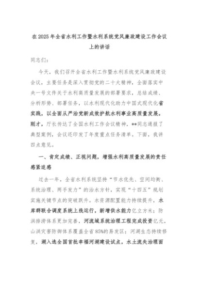 【七哥公文】2025年:在2025年全省水利工作暨水利系统党风廉政建设工作会议上的讲话+更多免费公文+VX:QiGeGongWen2024