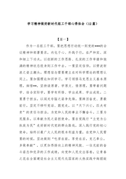 / 【七哥公文】2025年:(12篇)学习精神做好新时代组工干部心得体会+更多免费公文+VX:QiGeGongWen2024