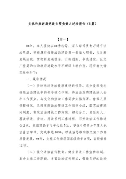 / 【七哥公文】2025年:(5篇)文化和旅游局党政主要负责人述法报告+更多免费公文+VX:QiGeGongWen2024